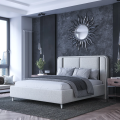 Высота изголовья влияет на восприятие высоты потолков. При потолках 2,5–2,7 м подходят модели с изголовьем до 1200 мм — это большинство моделей в каталоге. При потолках выше 2,7 м можно выбирать любые, включая высокие спинки Jessica, Scarlett, Madison.